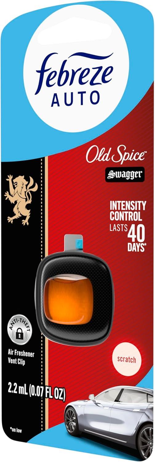 Febreze AUTO Air Freshener, Odor-Fighting Automotive Vent Clip, Midnight Storm Scent, 8 Count(Old Spice Swagger)