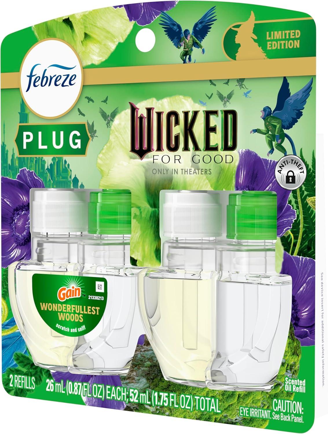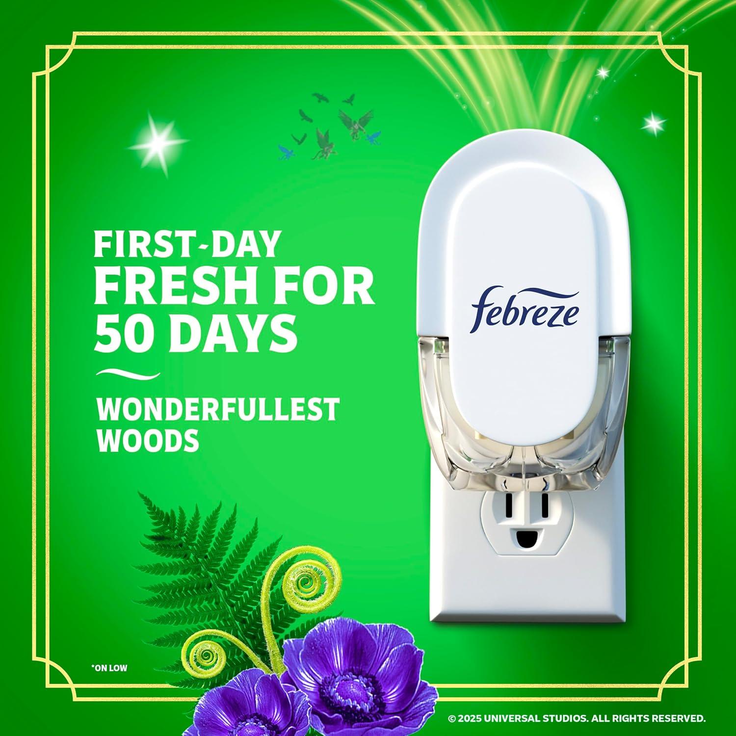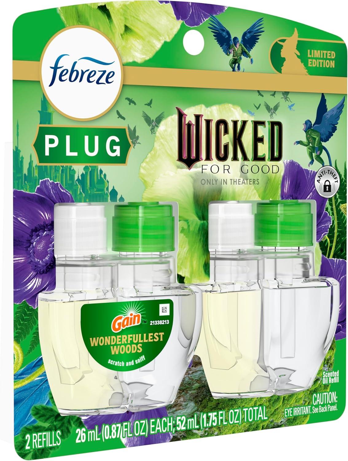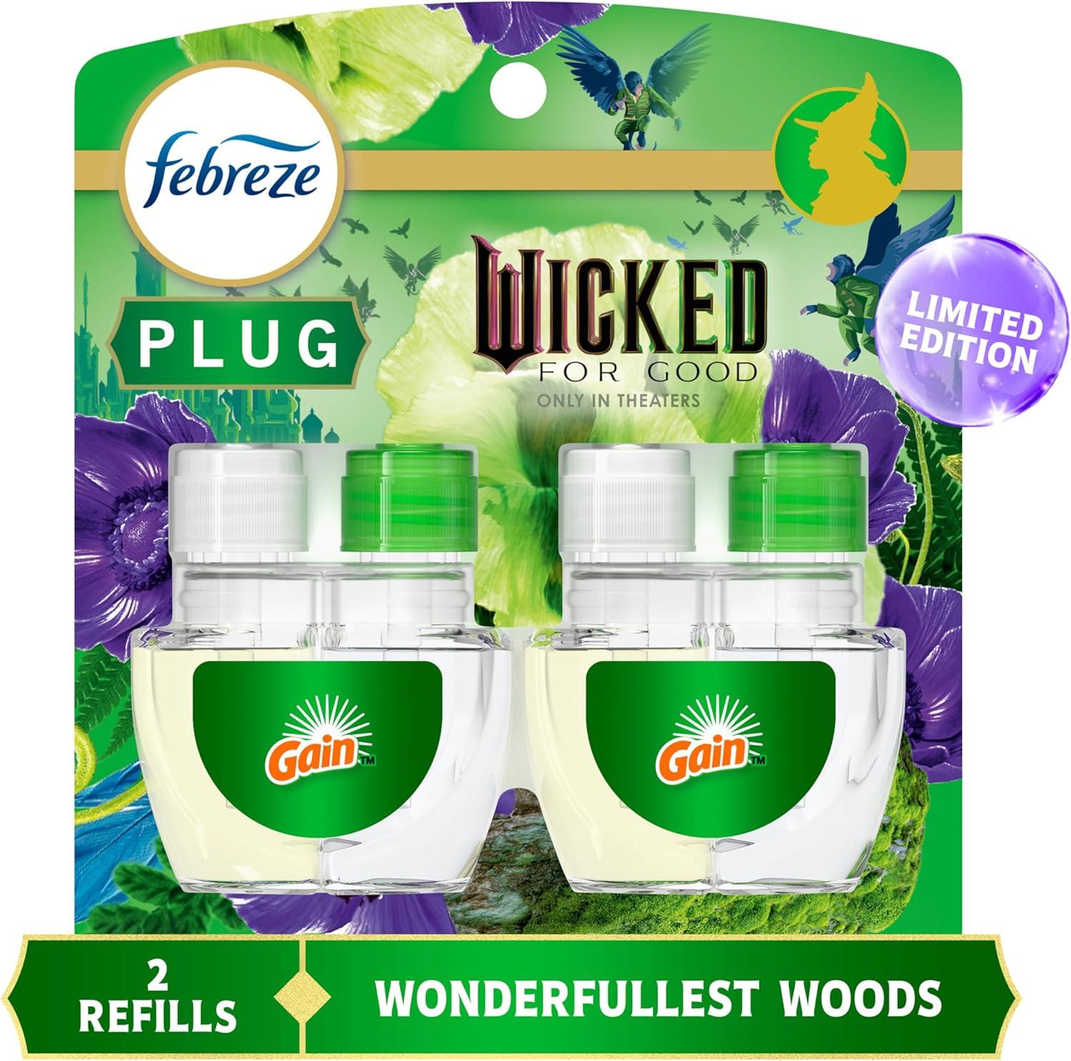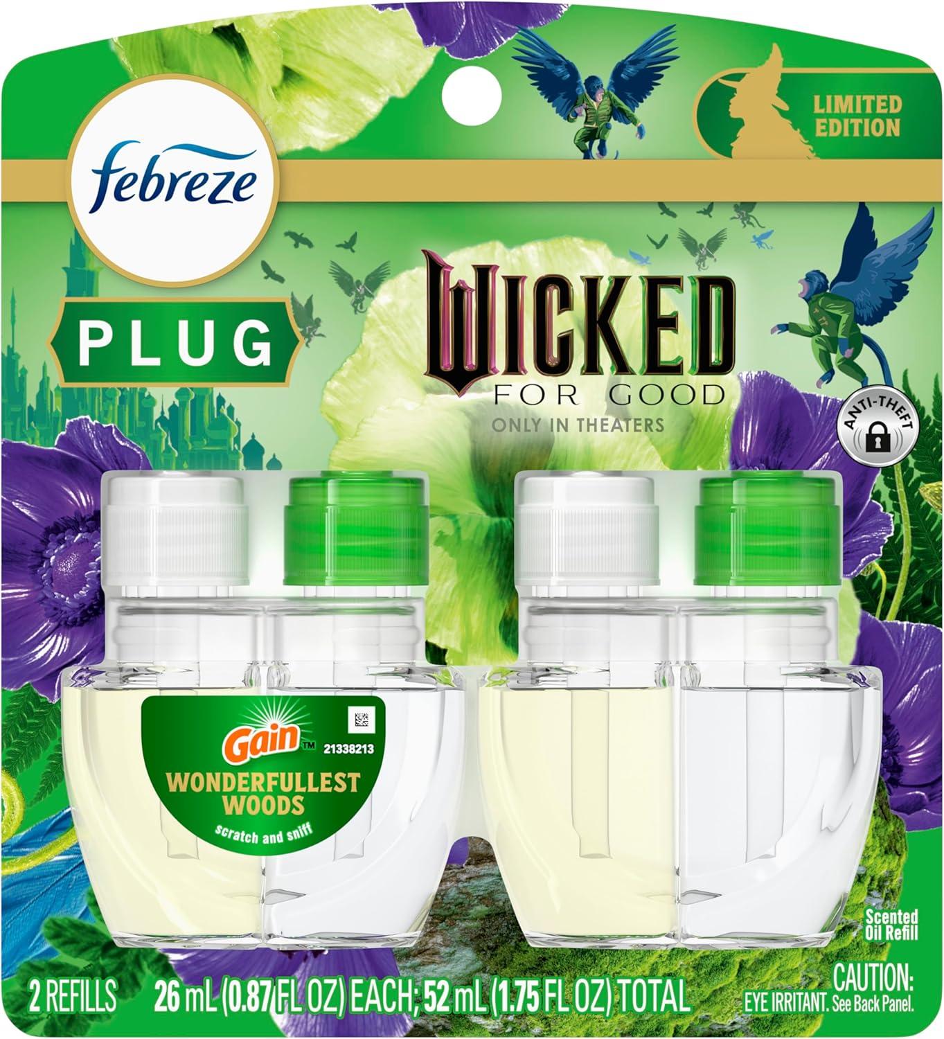 Febreze Plug In Air Freshener, “Wicked: For Good” Limited Edition Odor-Fighting Scented Oil Refill, Air Fresheners for Home and Bathroom and Kitchen, Long Lasting, Wonderfullest Woods, 2 Count(Wonderfullest Woods)