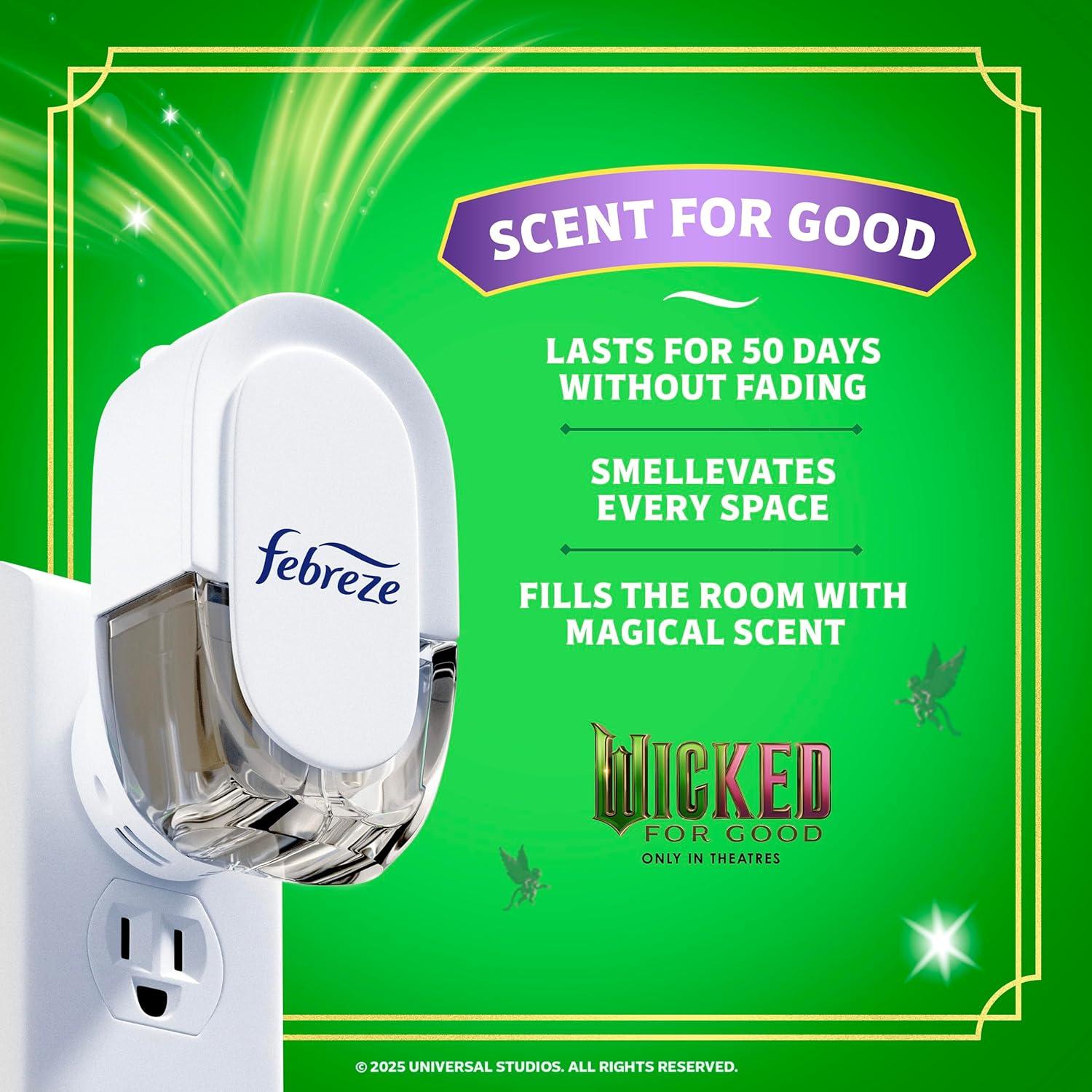 Febreze Plug In Air Freshener, “Wicked: For Good” Limited Edition Odor-Fighting Scented Oil Refill, Air Fresheners for Home and Bathroom and Kitchen, Long Lasting, Wonderfullest Woods, 2 Count(Beautifical Blossom)